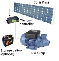2. The second solution is storing the energy in batteries, in order to use the pump also at times when there is no sunshine.